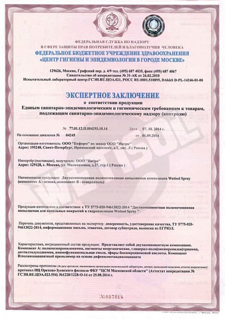 площадью 3600 м2 из материалов собственного производства торговой марки Wetisol.