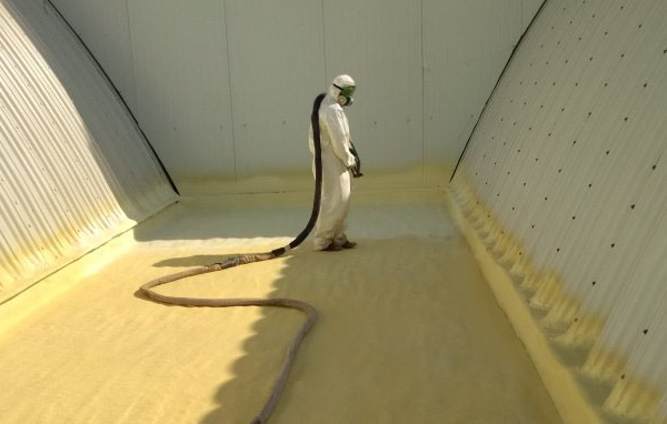 На данном объекте были применены материалы Wetisol Foam-50 и Wetisol Spray-400 (50 мм Foam-50 и 2мм Spray-400 Ral 7043). Работы по устройству кровли производила компания ООО «Ветлан».